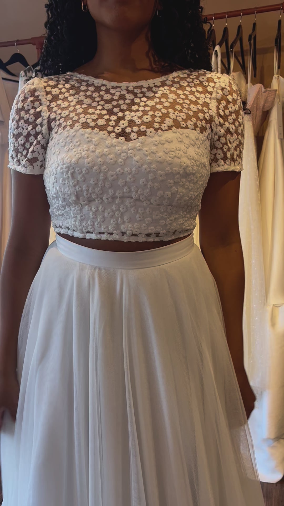 Finished with a wide waistband, Scarlett can be styled with crops, camis, or structured bodices depending on your vibe. A go-to for layered bridal looks with personality.